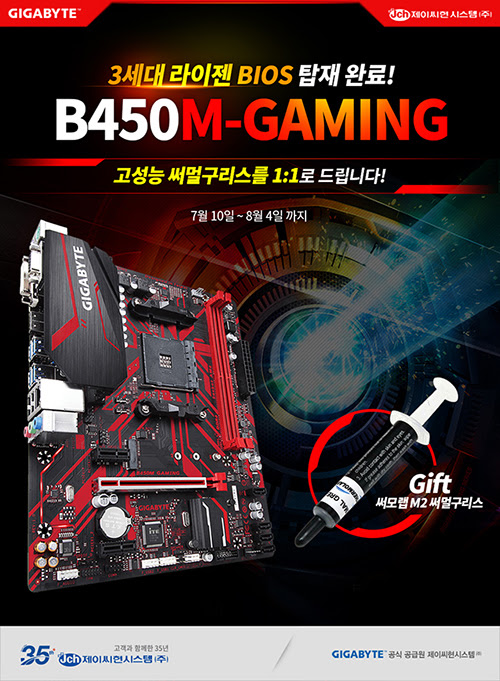 제이씨현시스템, 제이씨현, 기가바이트, GIGABYTE, B450M Gaming, 메인보드, 구매자 대상, 고성능, 써멀그리스, 1;1 증정, 이벤트, 진행