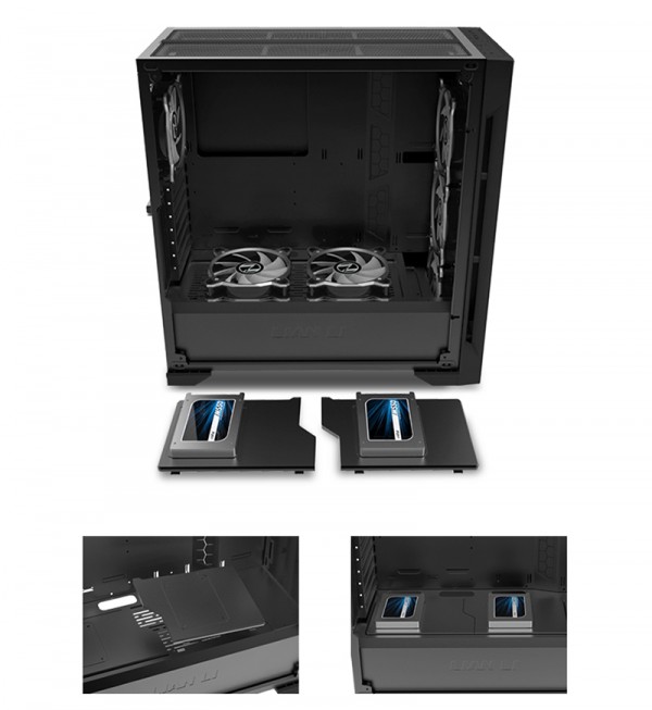 리안리 랜쿨 원 디지털 내부에는 보다 원활한 시스템 내부의 냉각 기류 형성을 위해 독립된 파워 서플라이 챔버를 갖추고 있으며, 그 위로는 슈라우드(Shroud) 형태의 탈부착이 용이한 커버를 제공하여 2.5" 저장장치 가이드 또는 120mm 규격의 팬 장착이 가능하여 사용자 편의에 따른 시스템 변형이 가능하다.