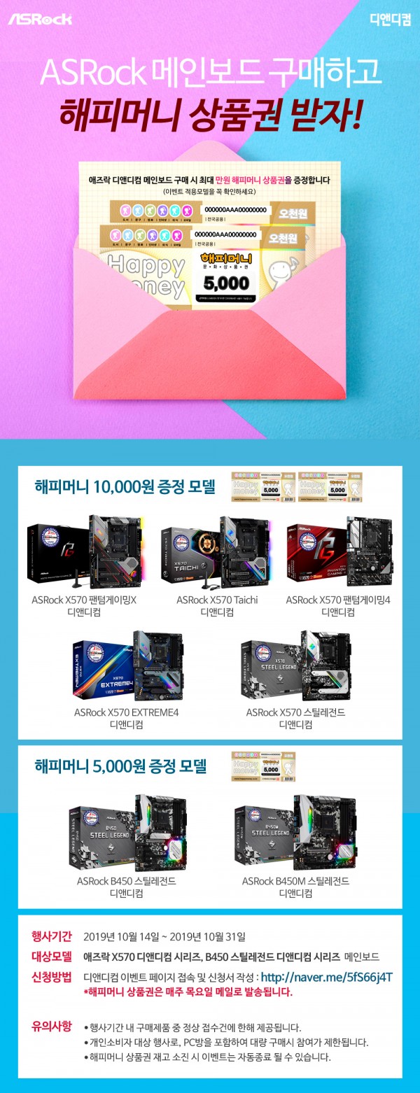 디앤디컴, dndcom, 에즈락, 애즈락, ASRock, X570, B450, 메인보드, 구매자, 해피머니 상품권, 증정