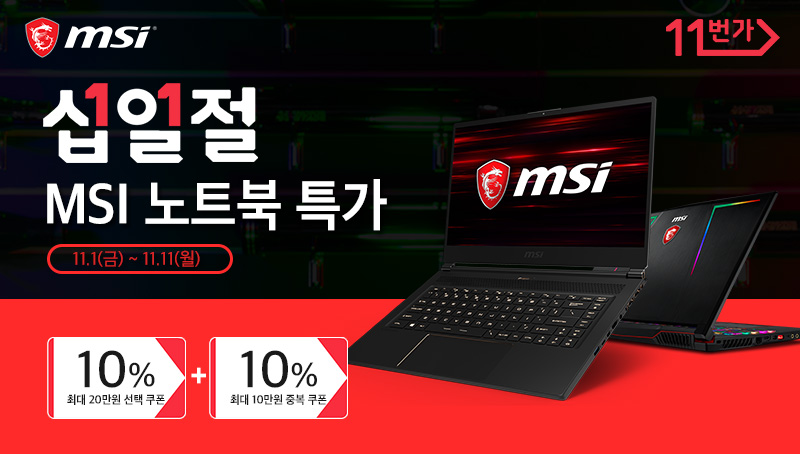 ㈜엠에스아이코리아(http://kr.msi.com, 대표 공번서)는 11번가에서 십일절 맞이 특가 프로모션을 진행한다고 밝혔다.