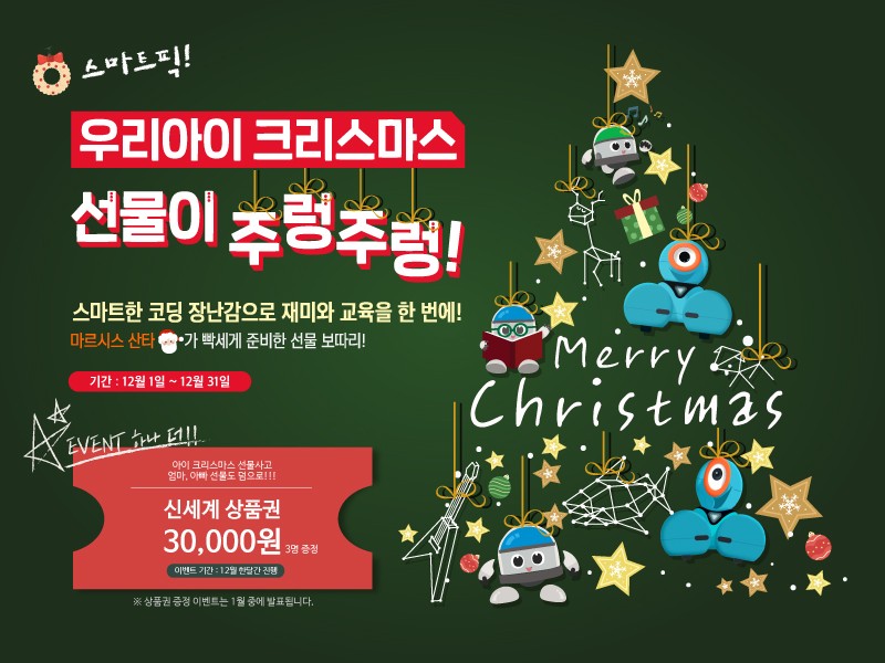 코딩 교육 전문 기업 마르시스는 12월 한 달 동안 ‘크리스마스 스마트 픽!’ 연말 프로모션을 진행한다고 밝혔다.