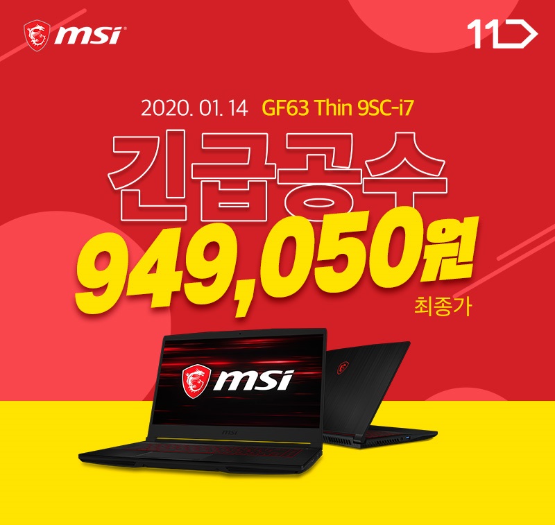 (주)엠에스아이코리아, 엠에스아이, MSI, MSI Korea, 11번가, 11st, GF63 Thin 9SC-i7, 게이밍 노트북, 긴급공수, 프로모션, 진행