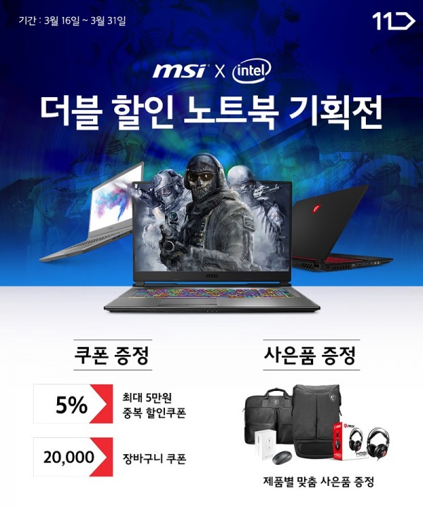 ㈜엠에스아이코리아(http://kr.msi.com, 대표 공번서)는 11번가에서 MSI X 인텔 노트북 기획전을 진행한다고 밝혔다.