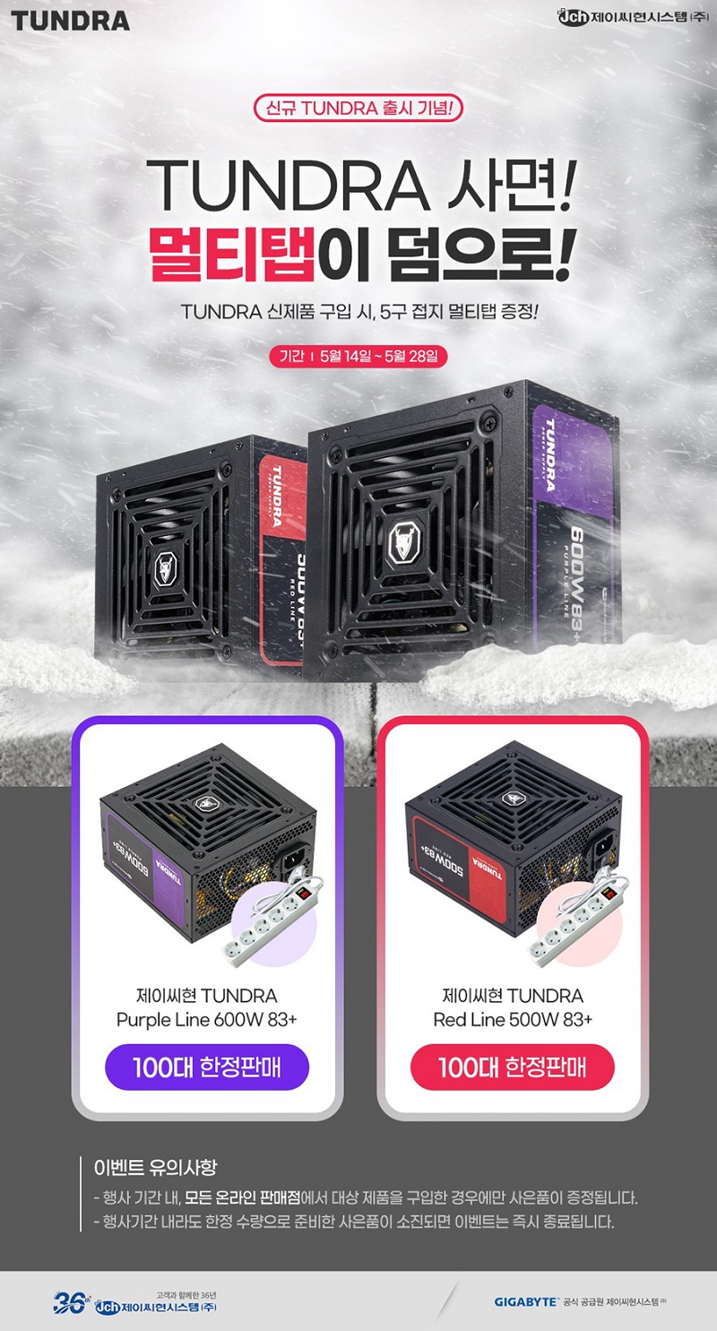 제이씨현시스템, 제이씨현, 기가바이트, GIGABYTE, TUNDRA, 파워서플라이, PSU, 5구 접지 멀티탭, 사은품, 증정