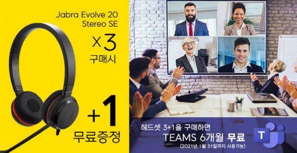 헤드셋은 150년 전통 사운드 기업 Jabra의 Evolve 20 SE stereo 헤드셋으로, 다우데이타는 3+1 이벤트와 구매 고객에게 마이크로소프트 Teams 화상회의 및 협업 솔루션을 6개월 무상 제공한다(Teams 사용 기간 : 2021년 1월 31일 까지).