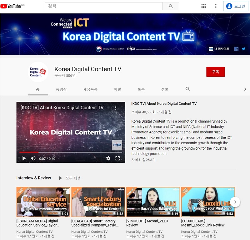 이외에도 국내 우수 디지털 콘텐츠의 상시 홍보를 위한 유튜브 채널인 ‘Korea Digital Content TV’를 신설(6월)했다. 해당 채널에서는 △인플루언서 활용 홍보 콘텐츠 제작 △온라인 타깃 광고 진행 등 해외 주요 기업 및 투자자를 대상으로 집중 홍보가 이뤄졌다. 이를 통해 총 121개 국내 우수 홍보 콘텐츠 제작·수급, 50만 이상의 조회 수를 기록했다.