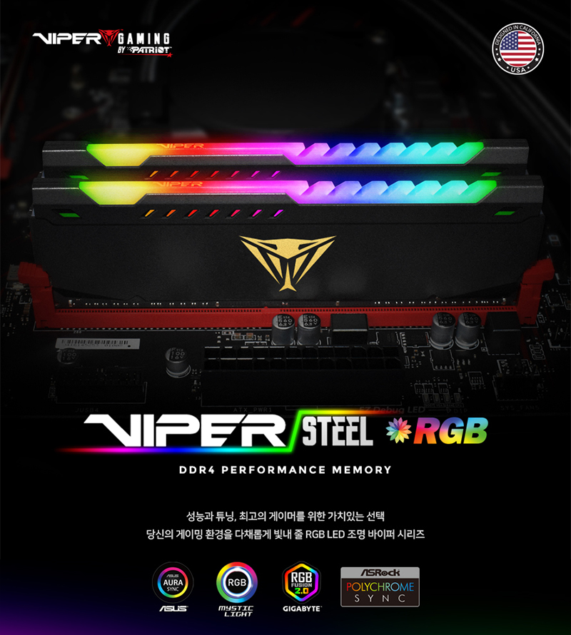 서린씨앤아이, seorincni, 패트리어트 메모리, Patriot Memory, 신규 PC메모리, 바이퍼 스틸, Viper Steel, RGB 시리즈, DDR4, 바이퍼 게이밍, Viper Gaming, 세 번째, 고성능 메모리