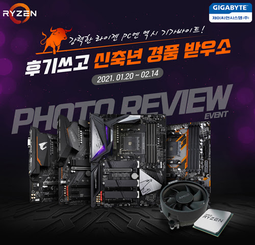 GIGABYTE Technology Co. LTD (이하 기가바이트)의 국내 공식 수입유통사인 제이씨현시스템㈜(대표:차현배)에서 기가바이트 B550/B450 메인보드 대상 "후기 쓰고 신축년 경품 받우소~" 이벤트를 진행한다.