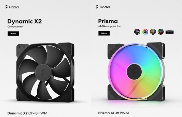 프렉탈디자인의 이번 쿨링팬 신제품은 이전에는 없던 프렉탈디자인이 최초로 선보이는 180mm 규격의 대형 쿨링팬 제품이다. 정숙하면서도 확실한 쿨링 성능으로 유명한 다이나믹 X2 GP-18 PWM 모델과 6개의 개별 발광 영역으로 선명하고 높은 광량의 RGB LED를 제공하는 프리즈마 AL-18 PWM 모델 2종이 이번 180mm 규격 모델로 선보여지는 제품이다.