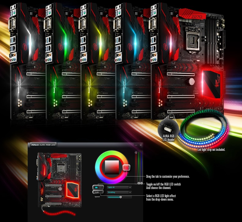 디앤디컴(주)에서 출시한 ASRock Z270 Extreme4는 AURA RGB LED를 지원하여 별도로 제공되는 유틸리티를 통해 색상, 점등 등을 조절할 수 있어 나만의 디자인으로 메인보드를 표현할 수 있다.