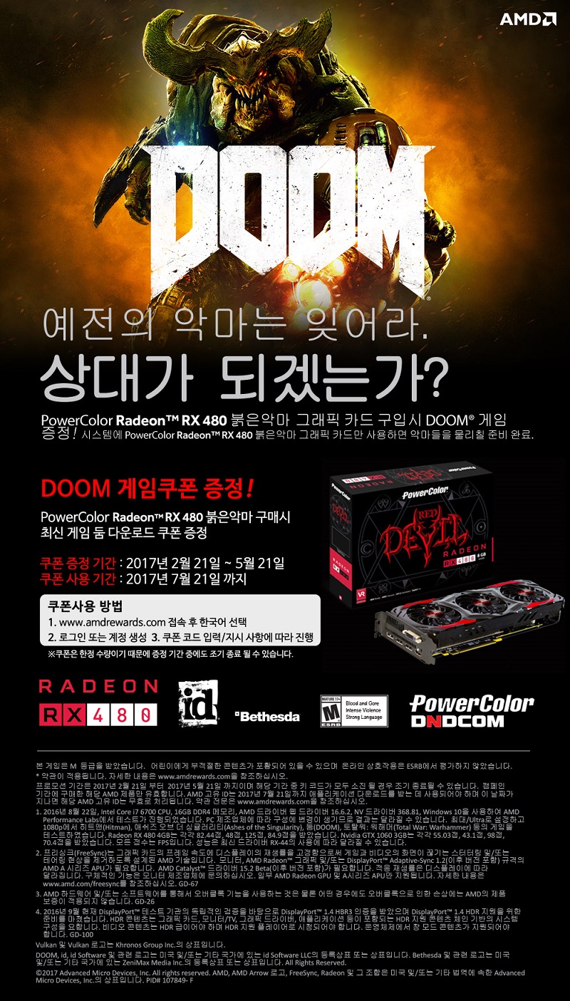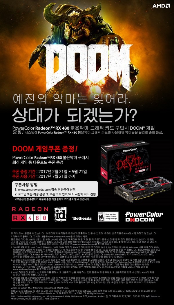 디앤디컴, ‘PowerColor RX480 붉은악마’ 구매 시 인기게임 ‘DOOM’ 증정