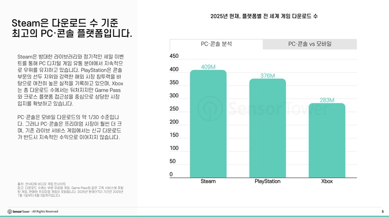 센서타워, sensortower, 2025년, 글로벌, PC, 콘솔, 게임, 다운로드, 10억 건, 돌파, PC·콘솔 게임 인덱스, 리포트, 발표
