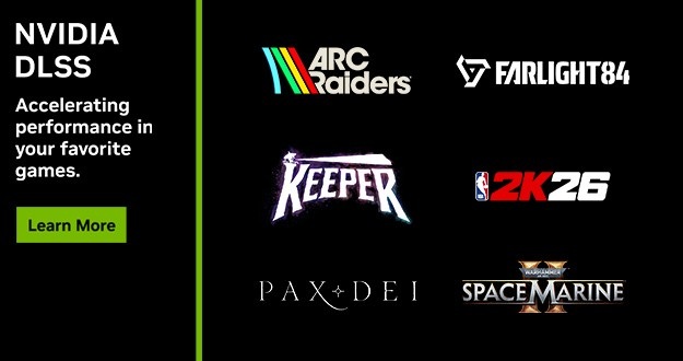 엔비디아(www.nvidia.co.kr)가 신규 게임 6종에 DLSS 4 기술을 적용해 게이밍 경험을 한층 강화한다고 밝혔다. ‘아크 레이더스(ARC Raiders)’, ‘팍스 데이(Pax Dei)’, ‘키퍼(Keeper)’, ‘파라이트 84(Farlight 84)’, ‘워해머 40,000: 스페이스 마린 2(Warhammer 40,000: Space Marine 2)’에는 DLSS 4 멀티 프레임 생성(Multi Frame Generation)이, ‘NBA 2K26’에는 DLSS 슈퍼 레졸루션(Super Resolution)이 지원된다.