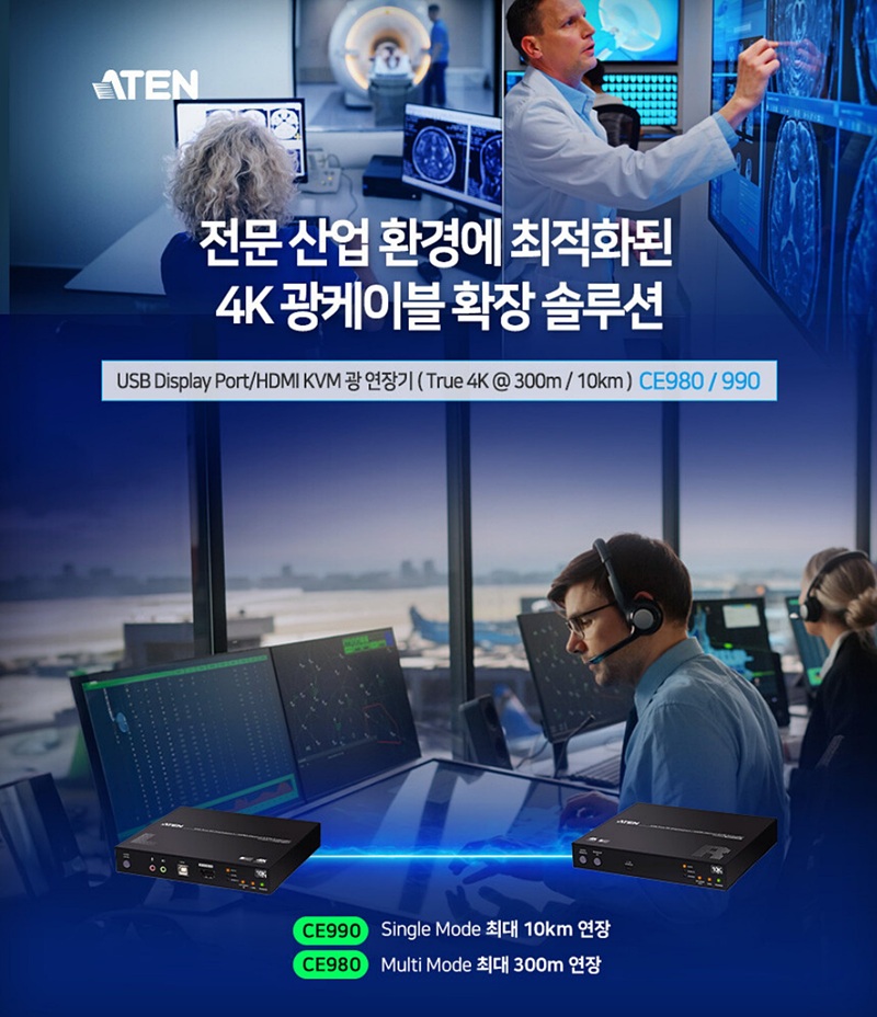 에이텐, Aten, 에이텐코리아, Aten Korea, True 4K HDR10, 화질과, 장거리, 광 전송, 지원, USB DisplayPort/HDMI KVM, 광 연장기, CE980·CE990, 출시