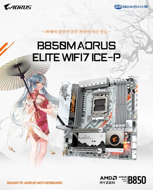 제이씨현시스템, 제이씨현, 기가바이트, GIGABYTE, 새로운, 캐릭터, 아리, 나만의, 아리와, 함께하는, B850M AORUS ELITE WIFI7 ICE-P, 메인보드, 출시