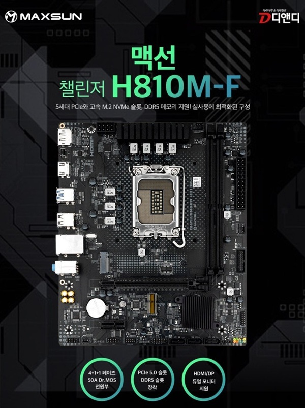 디앤디, 디앤디컴, dnd, dndcom, 맥선, PCIe 5.0, 지원, micro-ATX, 메인보드, MAXSUN, 챌린저 H810M-F, 출시
