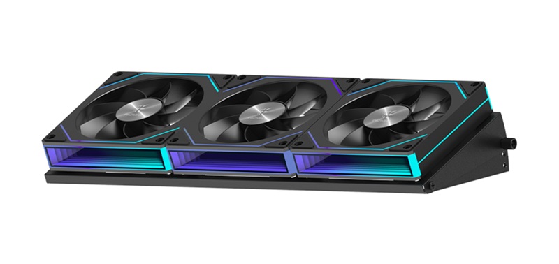WIZMAX 파워업 키트는 그래픽카드 및 주요 발열 부품에 직접적인 공기 흐름을 형성하도록 설계된 전용 쿨링 액세서리다. 최대 120mm 팬 3개를 장착할 수 있으며, 10도·15도·20도의 3단계 각도 조절 기능을 지원해 공기의 흐름을 원하는 방향으로 세밀하게 제어할 수 있다. 또한 하단, 상단, 측면 등 다양한 위치에 설치할 수 있어 케이스 구조에 따라 유연한 구성이 가능하다.