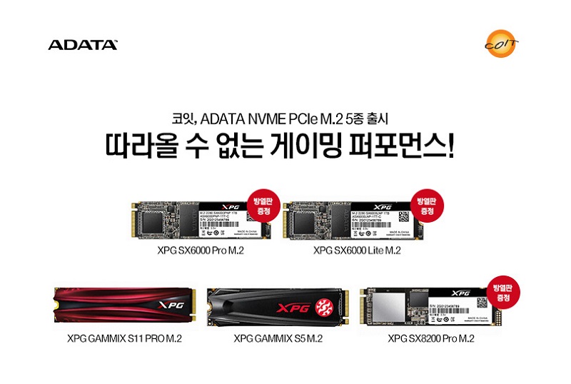 코잇 ADATA NVME PCIe M.2 글로벌 베스트셀러 5종 동시 출시, 데스트탑 PC부터 노트북 업그레이드에 적합