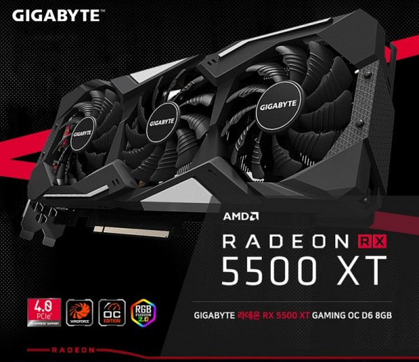 GIGABYTE Technology Co., LTD (이하 기가바이트)의 공식 공급원인 제이씨현시스템㈜ (대표: 차현배)는 2019년 12월 12일(목), 신제품 GIGABYTE 라데온 RX5500 XT 시리즈 그래픽카드 4종을 국내 공식 출시했다.
