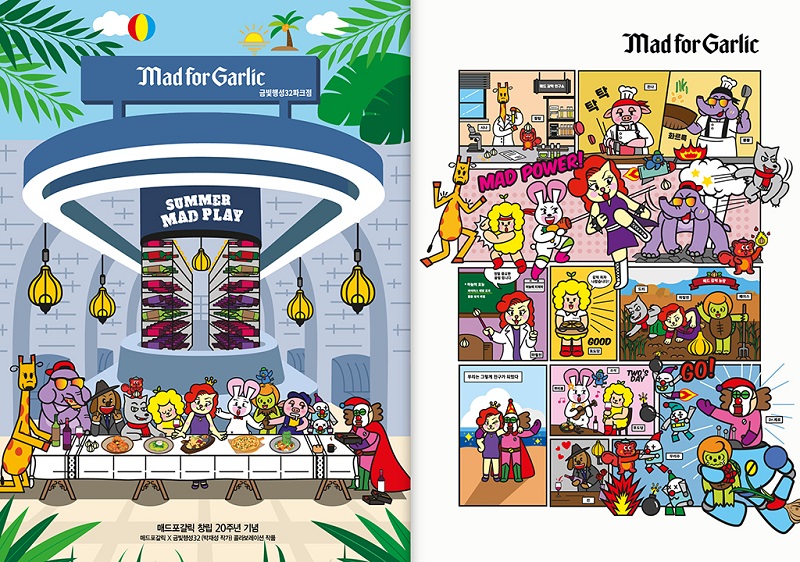 매드포갈릭(Garlic & Wine Specialty Dining Place)이 창립 20주년을 기념하여 ‘금빛행성 32’ 박재성 작가와 콜라보레이션을 통해 웹툰과 캐릭터를 활용한 ‘써머 매드 플레이(Summer MAD Play)’ 콘셉트를 선보인다고 16일 밝혔다.