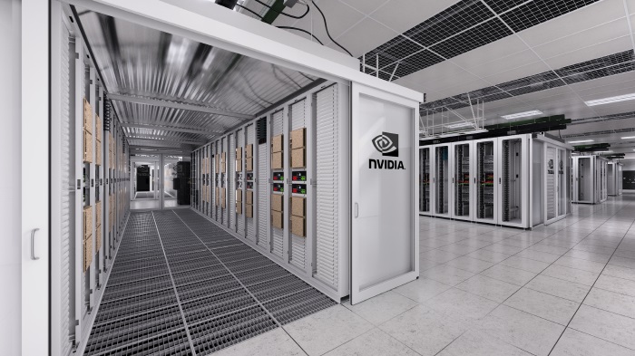 <2,000개 이상의 엔비디아 A100 GPU를 탑재한 엔비디아의 새로운 DGX 슈퍼POD는 한 달 안에 구축됐으며, MLperf 벤치마크의 대규모 성능기준에서 상용 제품 중 최고 순위를 차지했다(렌더링 이미지)>