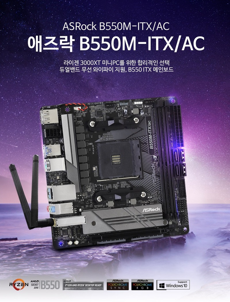 혁신적인 기술로 글로벌 PC DIY 마켓을 리딩하는 애즈락(ASRock) 메인보드, 그래픽카드 유통사 디앤디컴(대표: 여인우, 이하 디앤디)은 Dr.MOS 전원부로 고성능 라이젠(XT시리즈, 르누아르) CPU를 완벽하게 지원하는 ITX 메인보드, B550M-ITX/ac 를 공식 출시한다.
