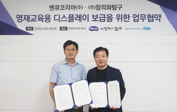 글로벌 디스플레이 브랜드 벤큐(지사장 소윤석, http://www.benq.co.kr)는 영재 교육 전문 기업 창의와탐구(대표 염만숙, https://mindalive.co.kr)와 8월 6일 오후 2시 『영재교육용 디스플레이 보급을 위한 업무 협약』을 체결했다고 밝혔다.