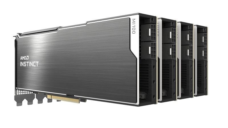 새로운 AMD CDNA 아키텍처 기반의 AMD 인스팅트 MI100 GPU는 AMD 에픽 프로세서와 함께 HPC 및 AI 기술 발전을 위한 새로운 수준의 가속 시스템을 지원한다. MI100은 HPC에서 최대 11.5 테라플롭스의 최대 FP64 성능을 지원하며, AI 및 머신 러닝 워크로드에서는 최대 46.1 테라플롭스의 최대 FP32 매트릭스(Matrix) 성능을 지원한다. MI100은 새로운 AMD 매트릭스 코어(AMD Matrix Core) 기술을 통해 AI 트레이닝 워크로드에서 전작 대비 7배 향상된 FP16 최대 이론 부동소수점 성능(theoretical peak floating point performance)을 지원한다.
