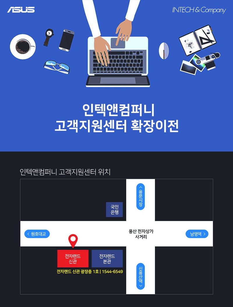 인텍앤컴퍼니는 최근 서비스 센터를 확장 이전하며 ASUS GeForce RTX 30 시리즈에 대한 서비스를 강화하였다. 새로운 인텍앤컴퍼니 서비스센터는 전자랜드 신관 광장층 1층에 위치해 고객들의 접근과 방문이 용이하다. 더불어 서비스센터 이전을 기념하기 위하여 방문기 또는 인증 사진 업로드 시 ASUS TUF GAMING 지포스 RTX 3080 O10G와 ASUS 그래픽카드 지지대가 증정되는 이벤트가 진행 중이다.