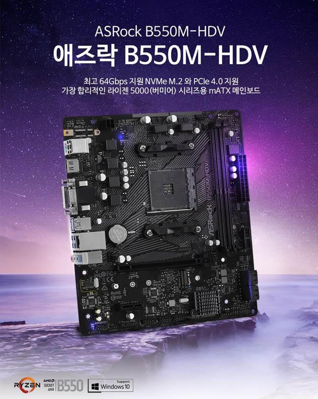 디앤디, 디앤디컴, dnd, dndcom, 애즈락, 에즈락, ASRock, 메인보드, mATX, AMD, 버미어, 라이젠 5000 시리즈, 11만원대, B550, B550M-HDV, 출시