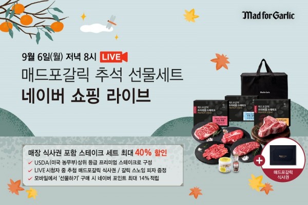 매드포갈릭, Mad for Garlic, 2021, 2021년, 추석 맞이, 최고급, 프리미엄 스테이크, 식사권, 밀키트, 추석 선물세트, 4종, 출시, 네이버 쇼핑 라이브, 라이브 커머스, 진행