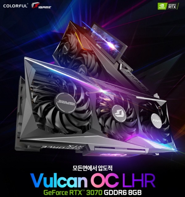 컬러풀의 플래그십 모델 ‘iGame 지포스 RTX 3070 Vulcan OC LHR’은 앞서 출시했던 iGame 지포스 RTX 3070 Vulcan OC 일반 제품에서 LHR GPU 칩을 적용해 암호화폐 채굴 성능을 제한한 제품이다.