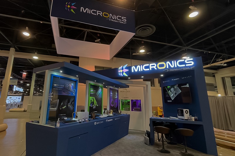 ▲ 마이크로닉스가 자체 디자인한 게이밍 기기를 CES 2022에서 공개했다.