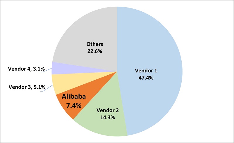 이번 보고서에서 알리바바 클라우드는 7.4%의 시장 점유율을 기록하며, 4년 연속 세계 3위를 기록했다. 또, 알리바바 클라우드는 아시아 지역에 본사를 둔 기업 중에 유일하게 상위 5개사에 들었다.