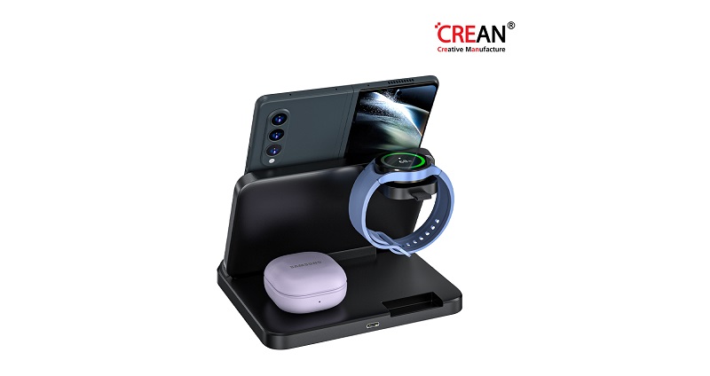 스마트폰 액세서리 전문 수입, 제조업체인 크레앙(CREAN)은 8월 출시되는 갤럭시 Z폴드5, Z플립5, 갤럭시 워치6와 호환되는 Q5 3in1 고속 무선 충전기 ‘CREQ5’를 출시했다.