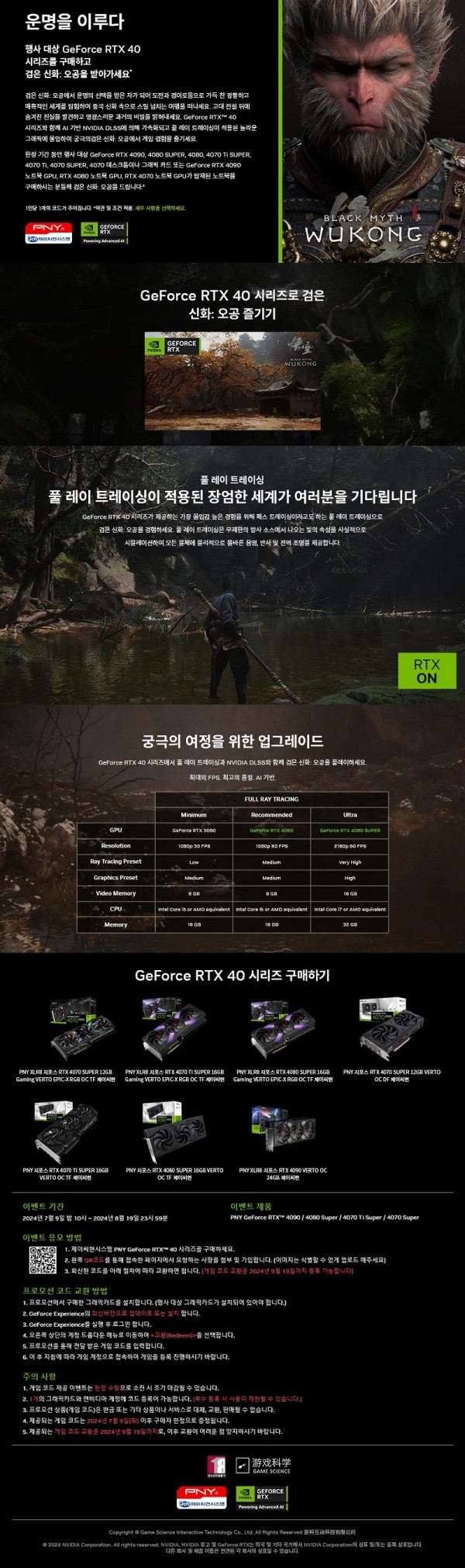 PC | 제이씨현 PNY 지포스 RTX 40 시리즈, 검은 신화 : 오공 게임 번들 프로모션