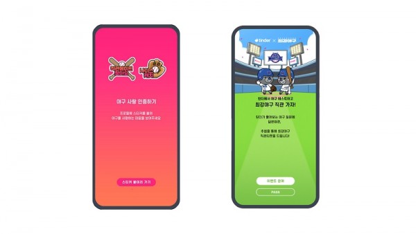 또한 틴더에서 이번 캠페인 기간 동안 한국에서만 단독으로 야구 테마의 프로필 스티커도 선보인다. 이용자는 야구 디자인의 스티커로 자신의 틴더 프로필을 꾸밀 수 있으며, ‘직관메이트 찾아요’ 문구의 스티커도 포함되어 있어 함께 야구 경기를 관람할 상대를 찾을 수도 있다.