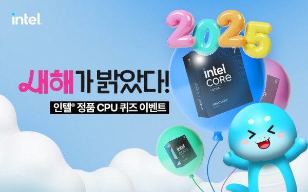 인텔 공인대리점 코잇(대표: 손창조), 인텍앤컴퍼니(대표: 서정욱), 피씨디렉트(대표: 서대식) 등 3사가 을사년을 맞이해 ‘2025 새해가 밝았다!’ 인텔 정품 CPU 퀴즈 프로모션을 실시한다.