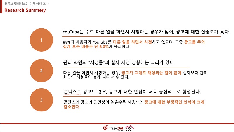 프릭아웃, freakout, 프릭아웃코리아, 광고 시청률, 높은, 인벤토리와, 시청 태도는, 미흡, 유튜브, 멀티태스킹, 이용 행태, 조사, 발표