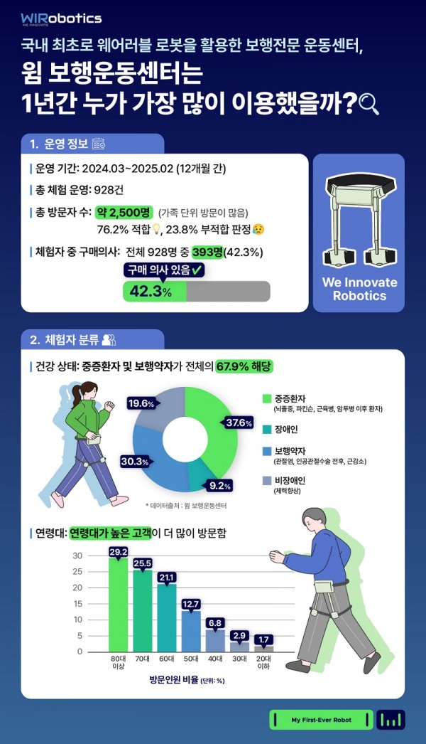 위로보틱스(WIRobotics)가 서울 윔 보행운동센터 오픈 1주년을 맞이해 참여자 데이터 기반 인포그래픽을 공개했다.