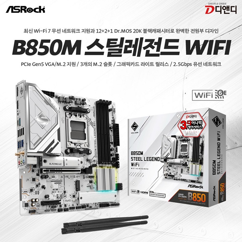 디앤디컴, 디앤디, dnd, 최신, 기술과, 합리적인, 가격, ASRock B850M 스틸레전드 WIFI, 메인보드, 출시