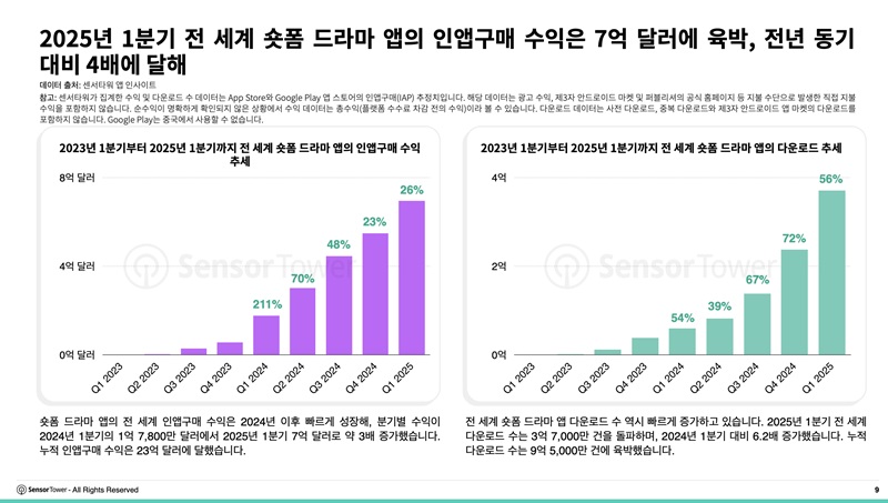 숏폼 드라마 앱 수익 전년 대비 3배 증가해 7억달러 육박, 센서타워 ‘2025년 숏폼 드라마 해외 진출 인사이트’ 리포트 발표