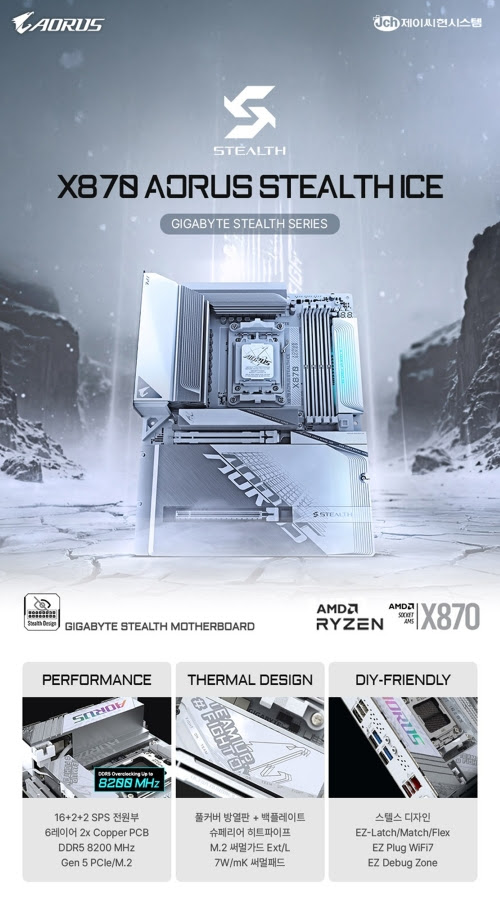 제이씨현시스템, 제이씨현, 기가바이트, GIGABYTE, 공간의, 제약을, 초월한, X870, B850, 스텔스, Stealth, ICE, 메인보드, 2종, 출시