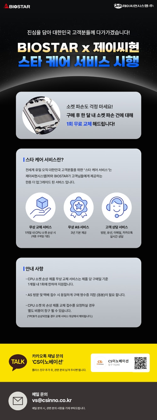 PC | 소켓 망가져도 걱정 마세요, 제이씨현 BIOSTAR 스타 케어 서비스 시행