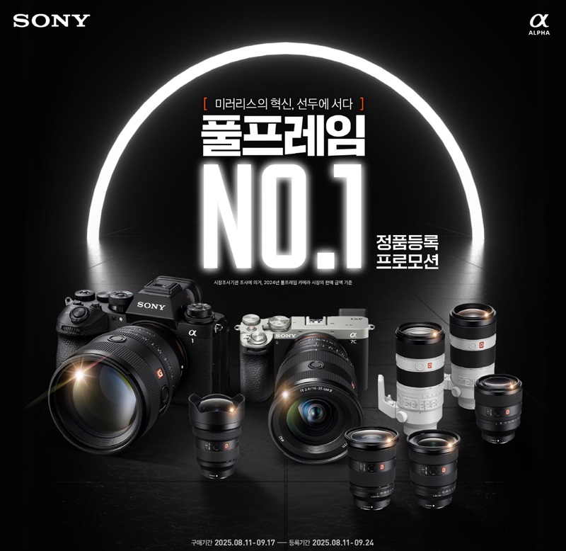 풀프레임 미러리스 카메라 시장 12년 연속 1위를 수성하고 있는 소니코리아가 8월 11일(월)부터 9월 17일(수)까지 정품등록 프로모션을 실시한다.