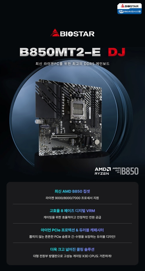 제이씨현시스템, 제이씨현, AMD, PC를, 위한, 합리적인, B850, 메인보드, 바이오스타, biostar, B850MT2-E DJ, 출시