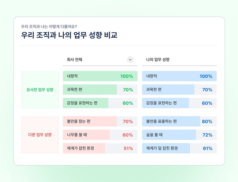 조직 전체와 구성원의 업무 성향을 비교·분석해 컬처핏을 객관적으로 파악할 수 있는 ‘팀인사이드’