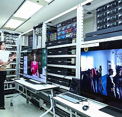 # 모니터와 셋톱박스로 가득한 시험실에는 총 10종의 셋톱박스 411대가 빼곡히 자리 잡고 있다. 이들 셋톱박스는 단말 오류를 사전에 발견하기 위해 고객의 이용 패턴에 맞춰 채널을 변경하고 OTT에 접속하는 테스트를 일 평균 13회 반복한다. 411대의 단말을 활용하면 하루 최대 5000번, 1년 동안 약 200만번의 테스트를 진행할 수 있는 셈이다. 테스…