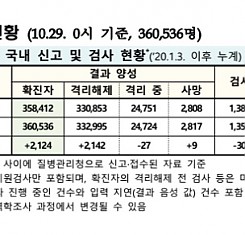 코로나19 국내 확진환자 총 360536명 및 격리해제 332995명·사망 2817명, 10월 29일 0시 기준 2124명 추가 확인