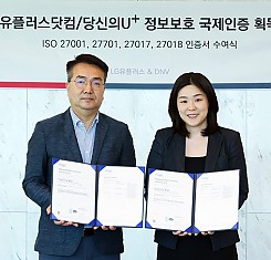 LG유플러스(대표 황현식, www.lguplus.com)는 고객에게 안전한 서비스를 제공하기 위해 홈페이지 '유플러스닷컴'과 모바일 앱 '당신의 U+' 대상 정보보호 국제 인증을 획득했다.이번 인증은 글로벌 인증기관 DNV로부터 획득한 것으로, ▲정보보호 관리체계(ISO27001) ▲개인정보보호 관리체계(ISO27701) ▲클라우드 서비스 보안(ISO 27…